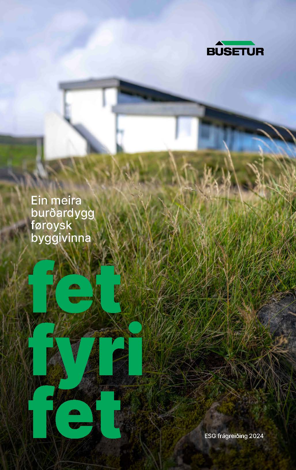 Vit vilja ganga á odda, fyri eini meira burðardyggari byggivinnu í Føroyum. Vit trúgva tí sum Peter Drucker segði: "Tað sum verður mátað, verður stýrt." Í hesum sambandi, eru vit í 2025, farin undir at gera eina ESG-frágreiðing, sum framyvir skal koma út á hvørjum ári. Í frágreingini finnur tú samlaða útlátið hjá Búsetur og Stoyp, okkara framstig og ætlanir frameftir.
